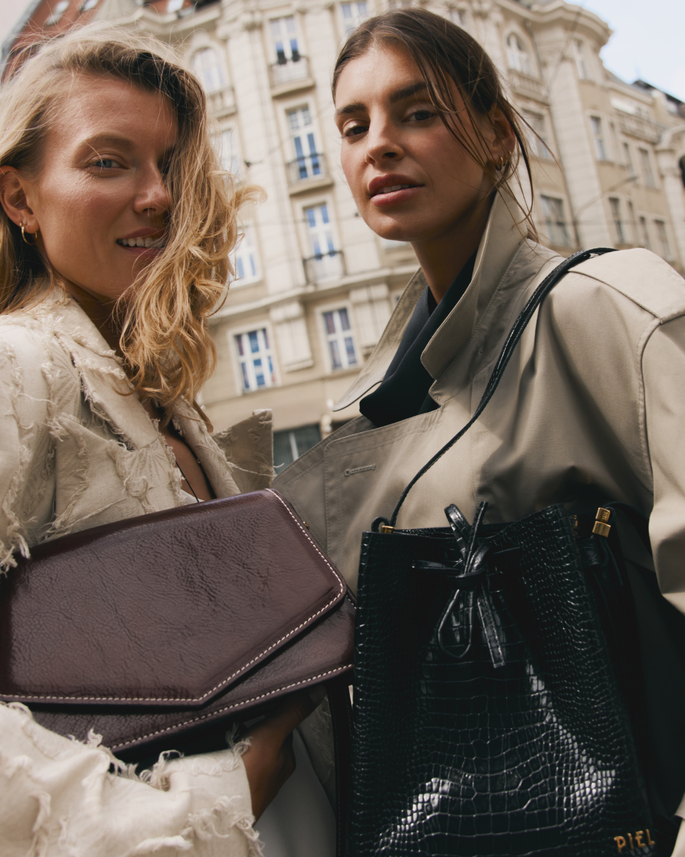 Torebki w klasycznym brązowym kolorze, wykonane z naturalnej skóry garbowanej roślinnie, o widocznej strukturze.